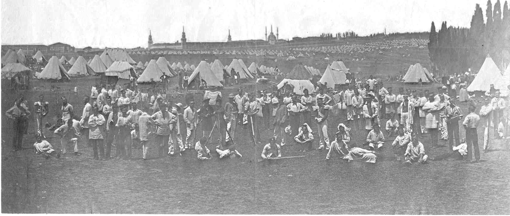 The early photographer James Robertson made some remarkable photographs at Scutari in 1854, while the British Army paused there on the way to the Crimea and encamped to the south of the Barrack Hospital. The soldiers in the foreground of his photos are neatly dressed, clean shaven and confident-looking (contrasting with some later photos in the Crimea). The British newspapers called them “the finest army that ever left these shores”. Behind them in one photo looms the enormous barracks, not yet in use as a hospital, where many of them were later to die after a nightmare journey back across the Black Sea in overcrowded sick transport ships.